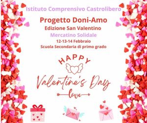 San Valentino è la festa dell’amore, un amore a 360 gradi: tra la coppia, tra genitori e figli e tra amici. Amore vuol dire prendersi cura, vuol dire rispetto, voler bene…una parola astratta che diventa concreta nel suo manifestarsi. Il mercatino della scuola secondaria dell’Istituto Comprensivo Castrolibero offre la possibilità di acquistare oggettini e bigliettini esclusivi realizzati artigianalmente. Vi aspettiamo.